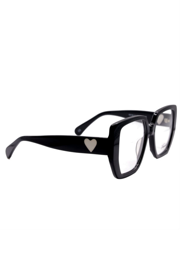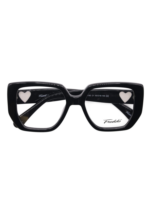 #BlackEyeglasses #HeartDetail #SquareFrames #ChicEyewear #StatementStyle #PrescriptionCompatible #BlueLightProtection #FreddoEyewear