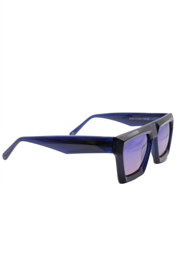 #BlueSunglasses #VioletLenses #GeometricEyewear #BoldStyle #UVProtection #FuturisticFashion #StatementAccessories