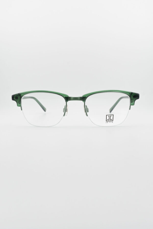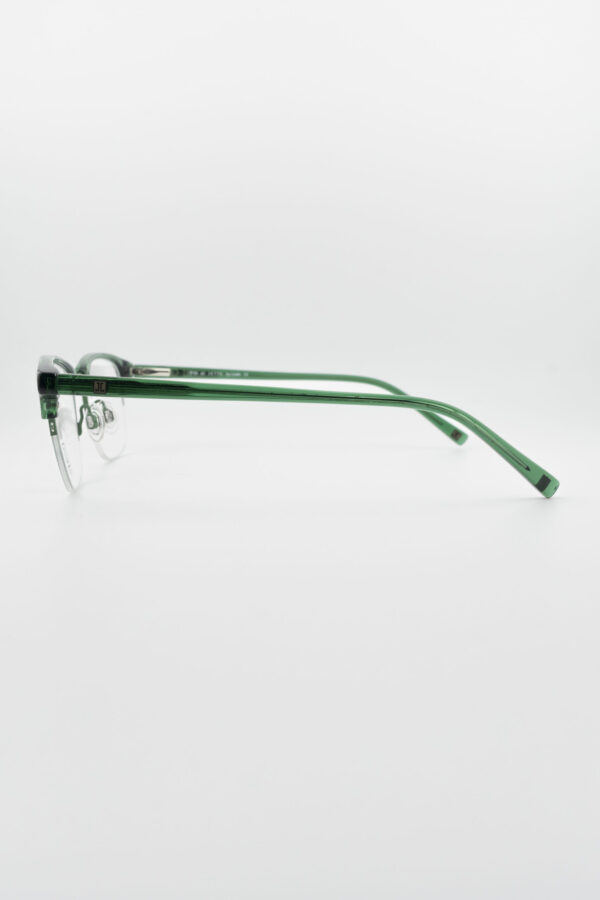 - Elegant semi-rimless eyeglasses with a striking green frame, perfect for a refreshing and bold statement.