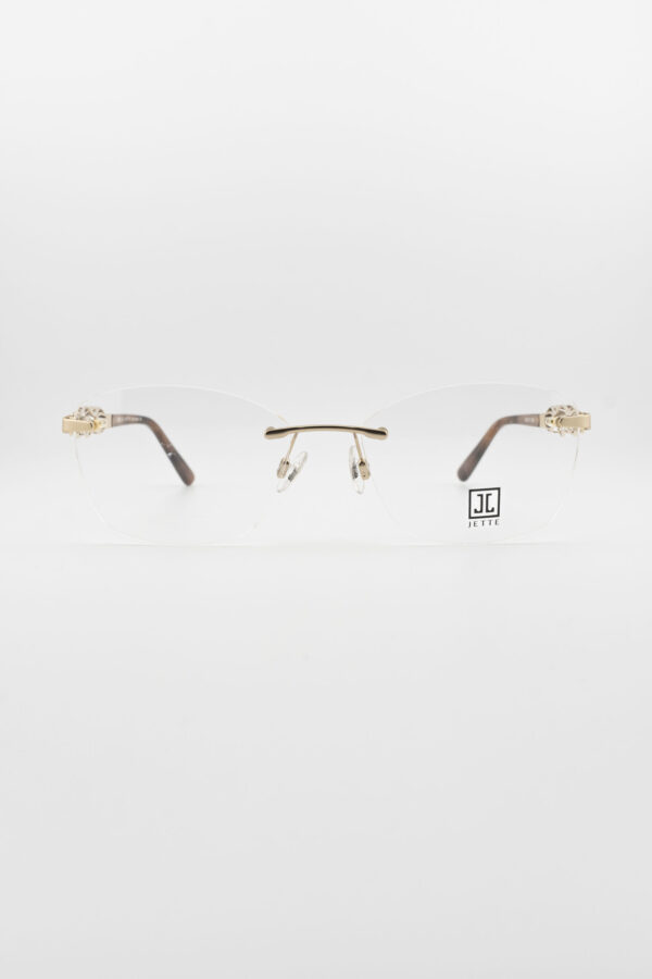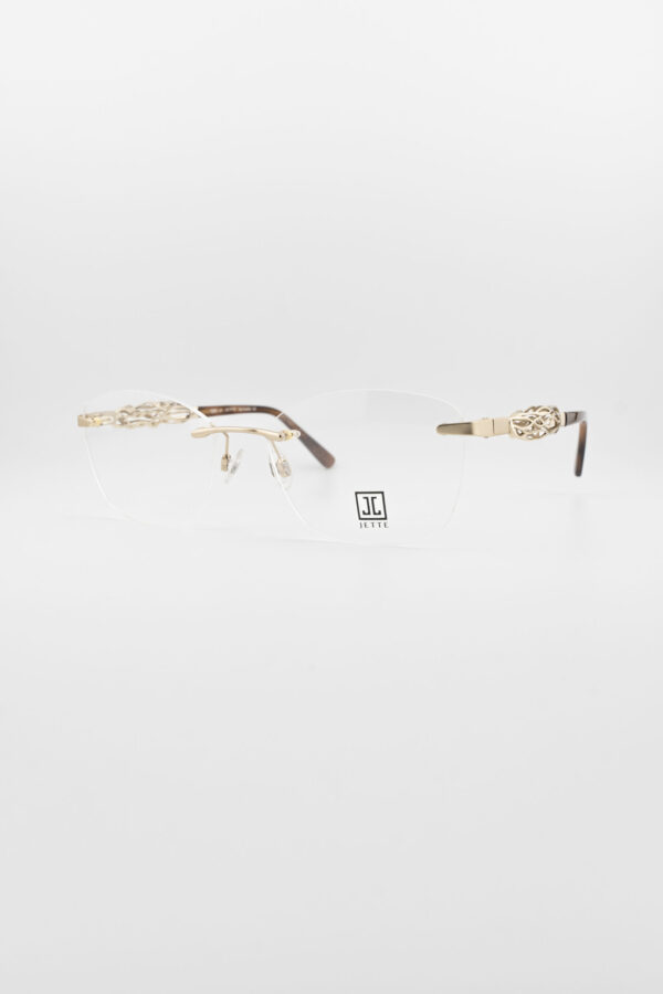- Rimless eyeglasses featuring an elegant gold-tone design, exuding sophistication and minimalism.