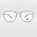 - Elegant aviator-style eyeglasses with a rose gold-tone metal frame.