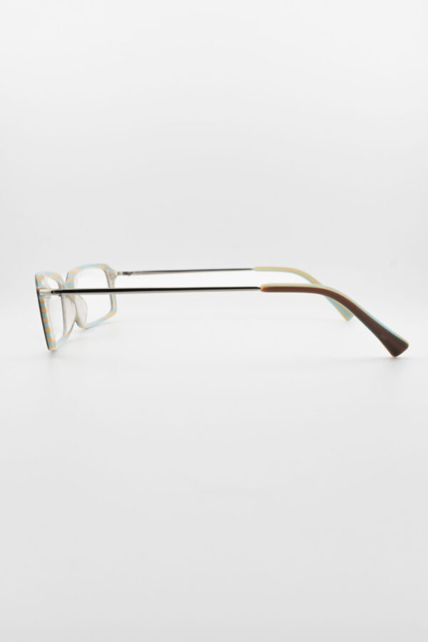 • Additional Features: Slim metallic temples with a soft golden accent and a pop of aqua on the temple tips for added style